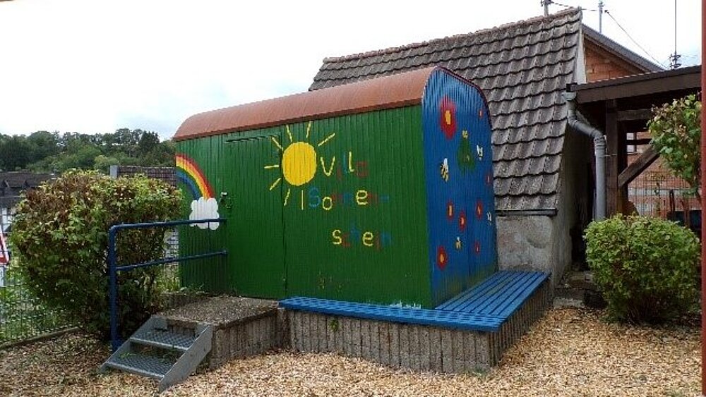 Die Prot. Kindertageseinrichtung “Villa Sonnenschein“ in Bosenbach, befindet sich in einem alten, zweistöckigen Gebäude. In der zweigruppigen Einrichtung können 35 Kinder im Alter von 1- 6 Jahren aufgenommen werden.