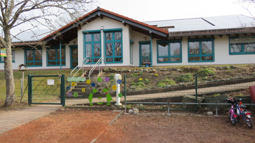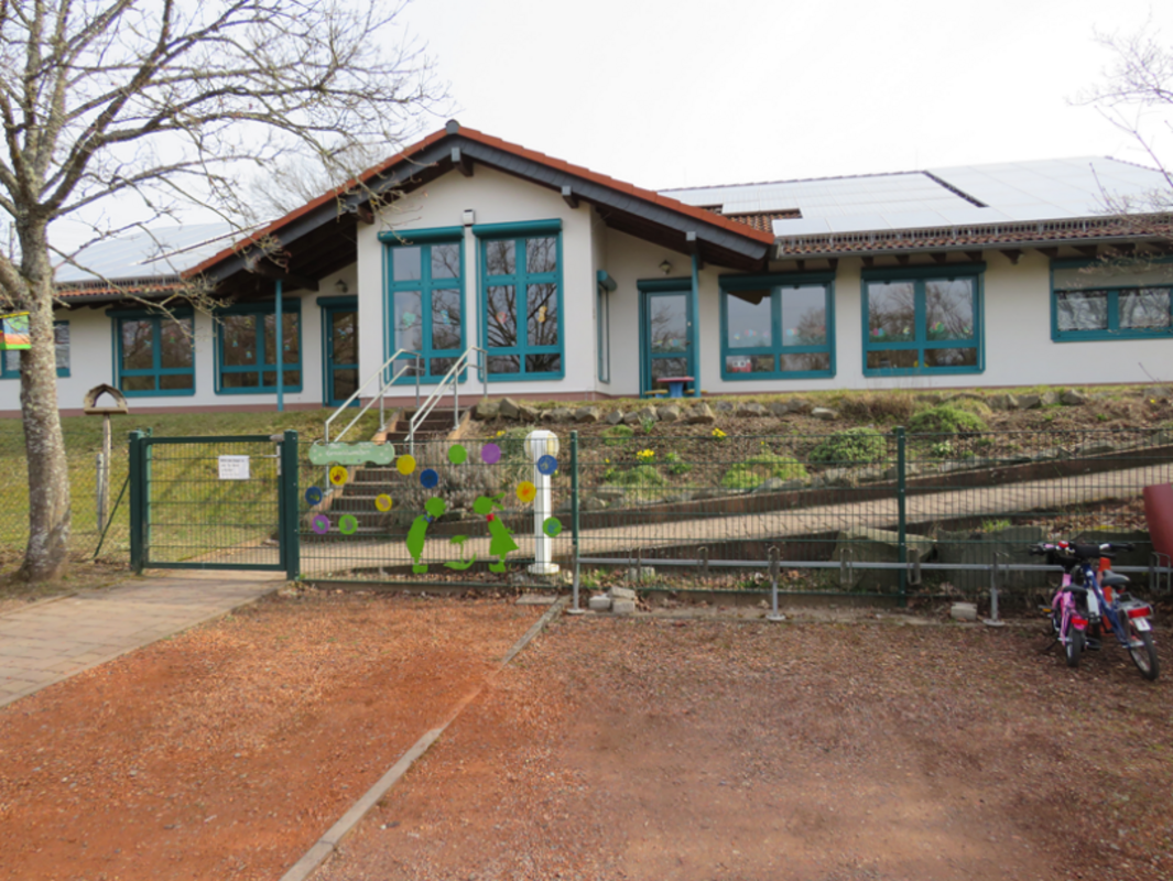 Die Kita liegt am Ortsrand von Jettenbach und ist in den Gesamtkomplex Grundschule, mit der wir eng kooperieren, Sportanlage und Musikantenlandhalle integriert.