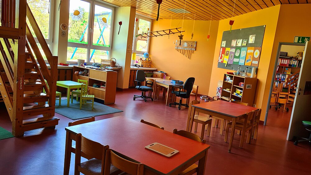 Im oberen Stockwerk werden die 2 bis 4-Jährigen im unteren die 4 bis 6-Jährigen Kinder betreut.