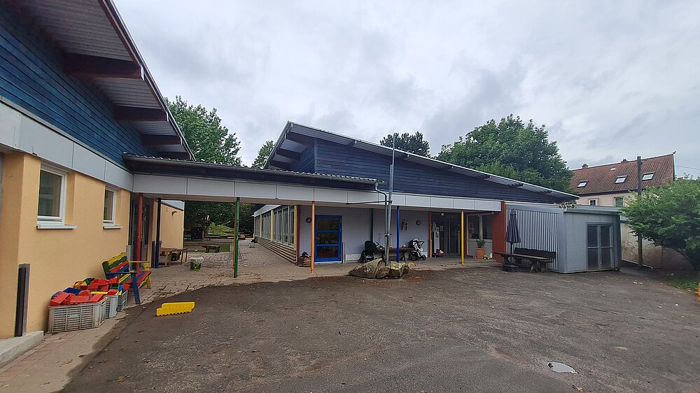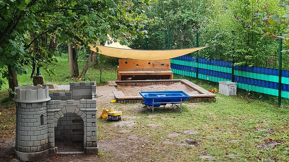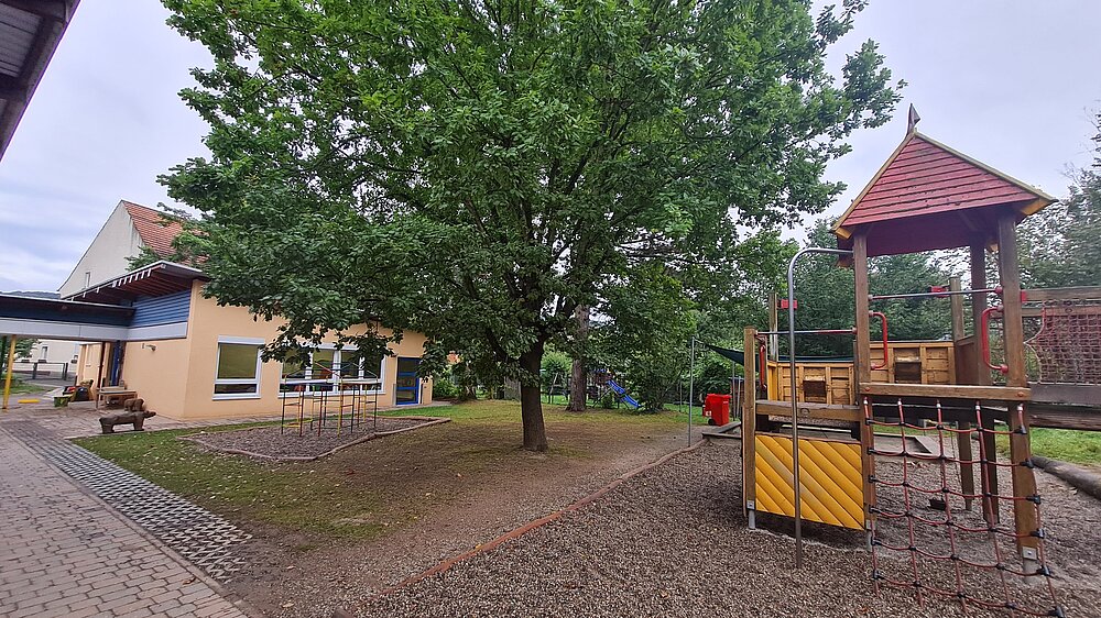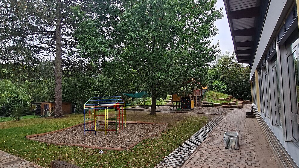 Außerdem wird Bewegung in unserem naturnahen, großen Außengelände und unserem Turnraum groß geschrieben. Die Kinder können das Außengelände fast während des gesamten Tages frei nutzen und ihre motorischen Fertigkeiten dort üben und ausbauen.