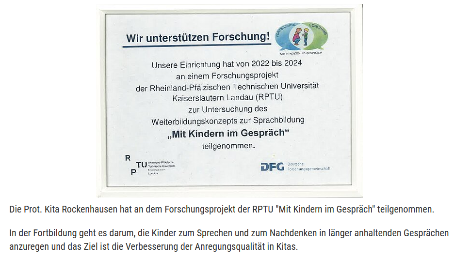 - Teilnahme an Forschungsprojekt der RPTU "Mit Kindern im Gespräch"